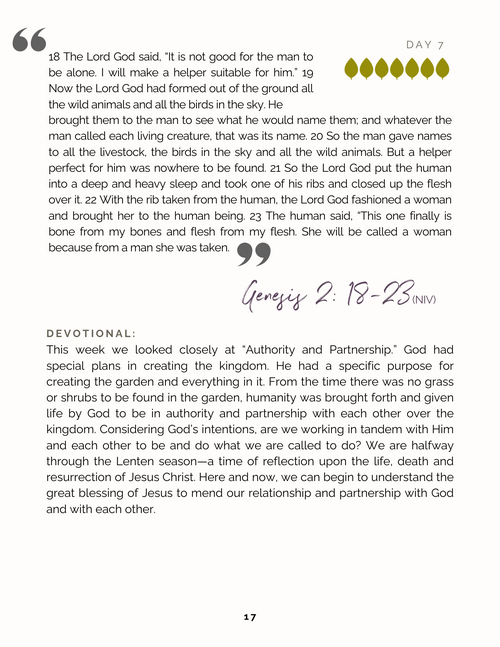 Each day, we'll share a daily devotional here and on the app for you to reflect on. (Download the app for an interactive experience!) Print copies will be available for purchase on campus on Thursdays while supplies last.