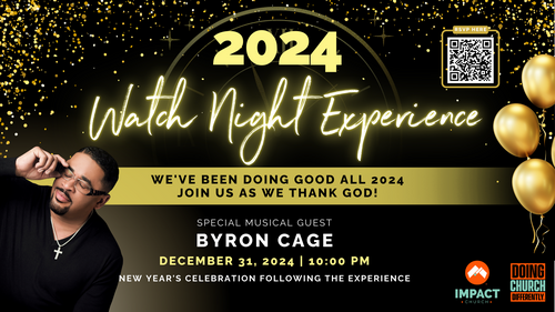 Join us for our 2024 Watch Night Experience as we reflect on a year of Doing Good and thank God for His faithfulness. Don’t miss an inspiring evening featuring special musical guest Byron Cage and a joyful New Year's celebration to follow.